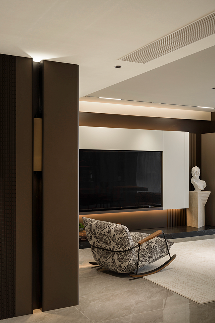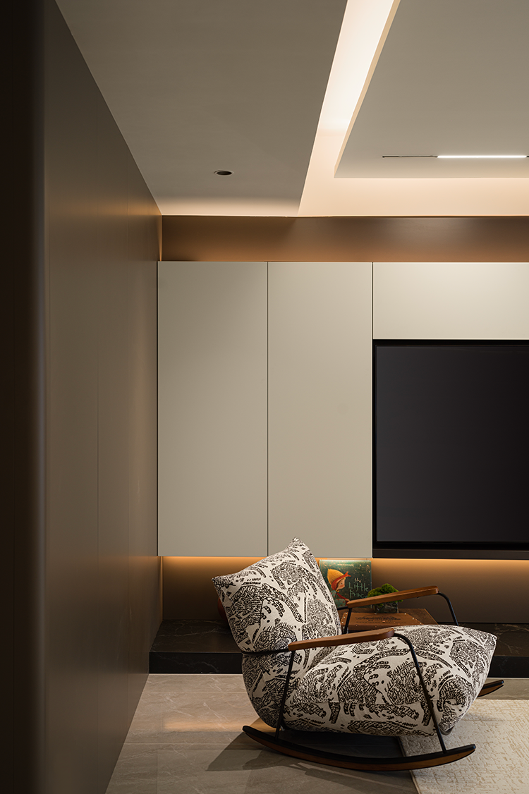 经由灰白与木色交织的线面轮廓,将静谧的艺术之美糅入其中。摹写空间张力的松弛性与简约感,呈现惬意安然的生活笔触。