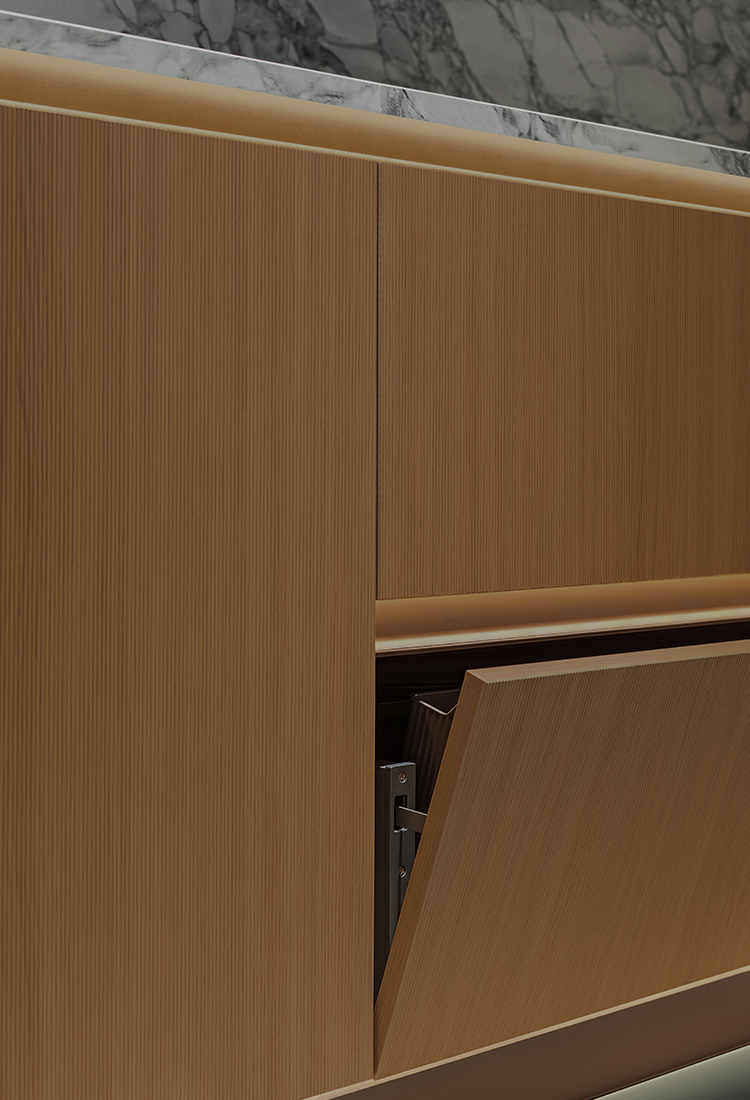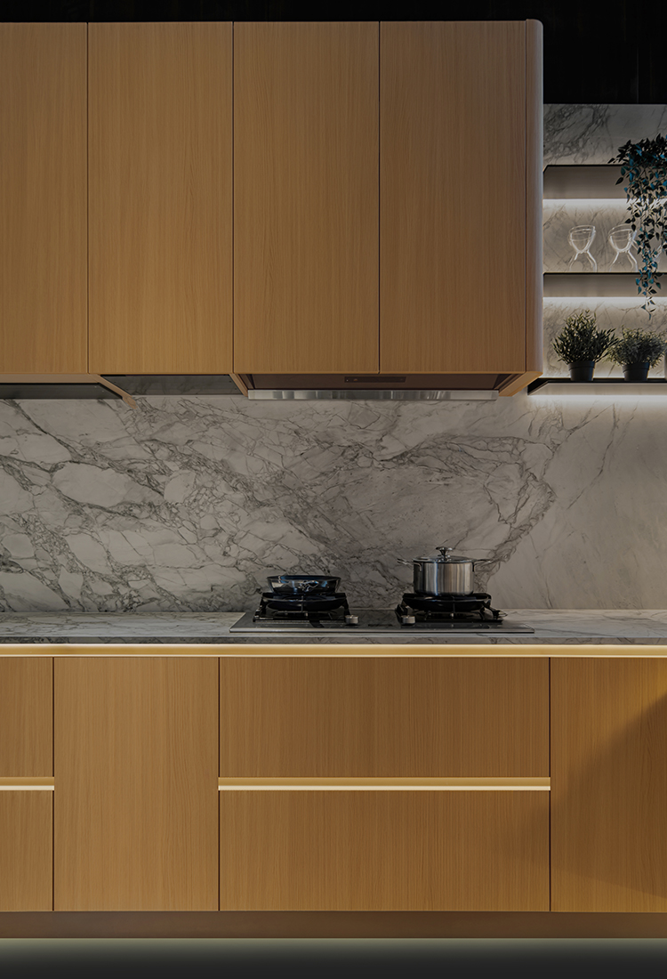 甄选意大利进口板材,以自然纹理与极简线条勾勒空间格调